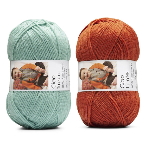 Ciao Trunte ist ein Garn, mit dem zu Stricken ein Vergnügen ist: weich, warm, atmungsaktiv, geeignet für eine Fülle an verschiedenen Projekten kann es auch für Babys und all diejenigen genommen werden, die nur das weichste Garn auf der Haut vertragen. Produziert aus 100% butterweicher Merinowolle eignet es sich für alles von Pullovern, Mützen, Schals, Handschuhe, Jäckchen und natürlich bis zu Kinder- und Babysachen. Das Garn ist superwash behandelt und kann im Wollprogramm bei max. 40°C in der Maschine gewaschen werden.
