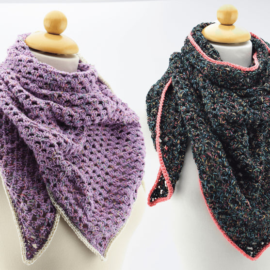 Tolle und einfache Anleitung für einen wirklich schönen Schal/Tuch. Er wird aus dem fantastischen Mayflower Spring Garn gehäkelt, welches in sechs verschiedenen Farben erhältlich ist. Alle sechs Farben haben ein wunderschönes Farbspiel im Garn, welches in dieser Anleitung sehr gut zur Geltung kommt. Stelle Deinen Schal mit einer Kante in einer Kontrastfarbe fertig, um Deinen ganz eigenen Look zu kreieren.