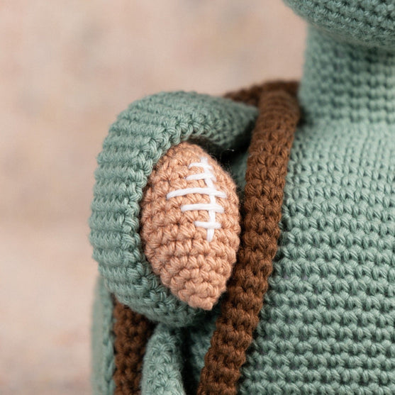 Sag Hallo zur niedlichen Schildkröte Theo. Er ist ein netter Kerl, der gerne mit seinen Freunden amerikanischen Football spielt. Theo wird mit Cotton 8/4 gehäkelt, arbeitest du ihn jedoch in 8/6 oder 8/8 dann wird er noch größer!