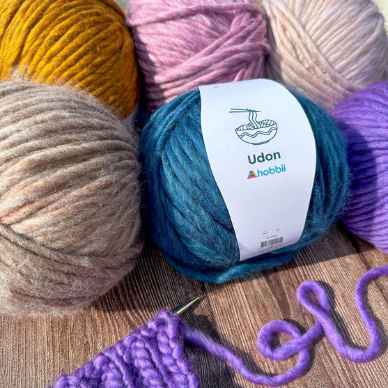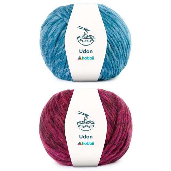 Udon ist ein tolles, supervoluminöses Garn, dessen Geheimrezept in der Kombination von 80 % Acryl und 20 % Wolle liegt und das so Haltbarkeit, Zweckmäßigkeit, Wärme, Weichheit und Textur in sich vereint. Das Garn ist 1-fädig und leicht gezwirnt mit einer rustikalen Struktur, die einen schönen und unerwarteten Look mit leichten Variationen in der Dicke erzeugt.