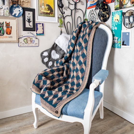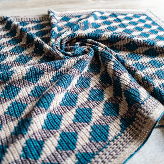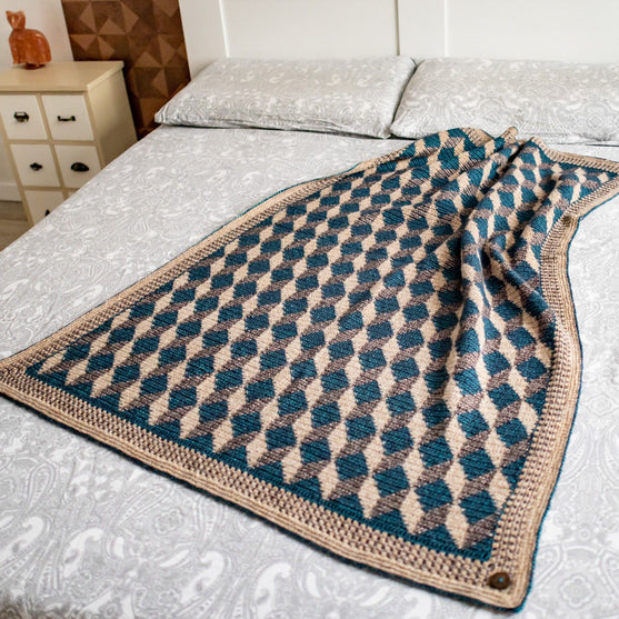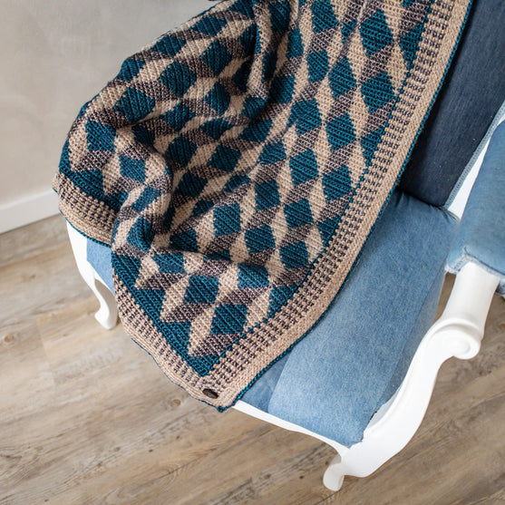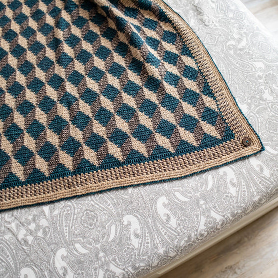 Entdecke mit dieser Anleitung für die Häkeldecke Infinity Cubes die perfekte Mischung aus Eleganz und Funktionalität. Dieses Muster wird mit der Tapestry-Technik gehäkelt und ist ein faszinierendes und dankbares Projekt für Häkel-Fans aller Niveaus.